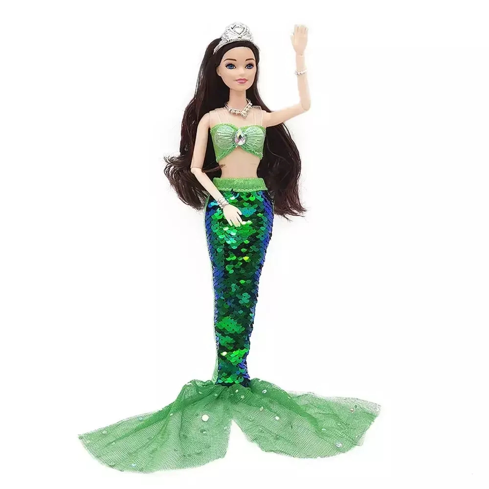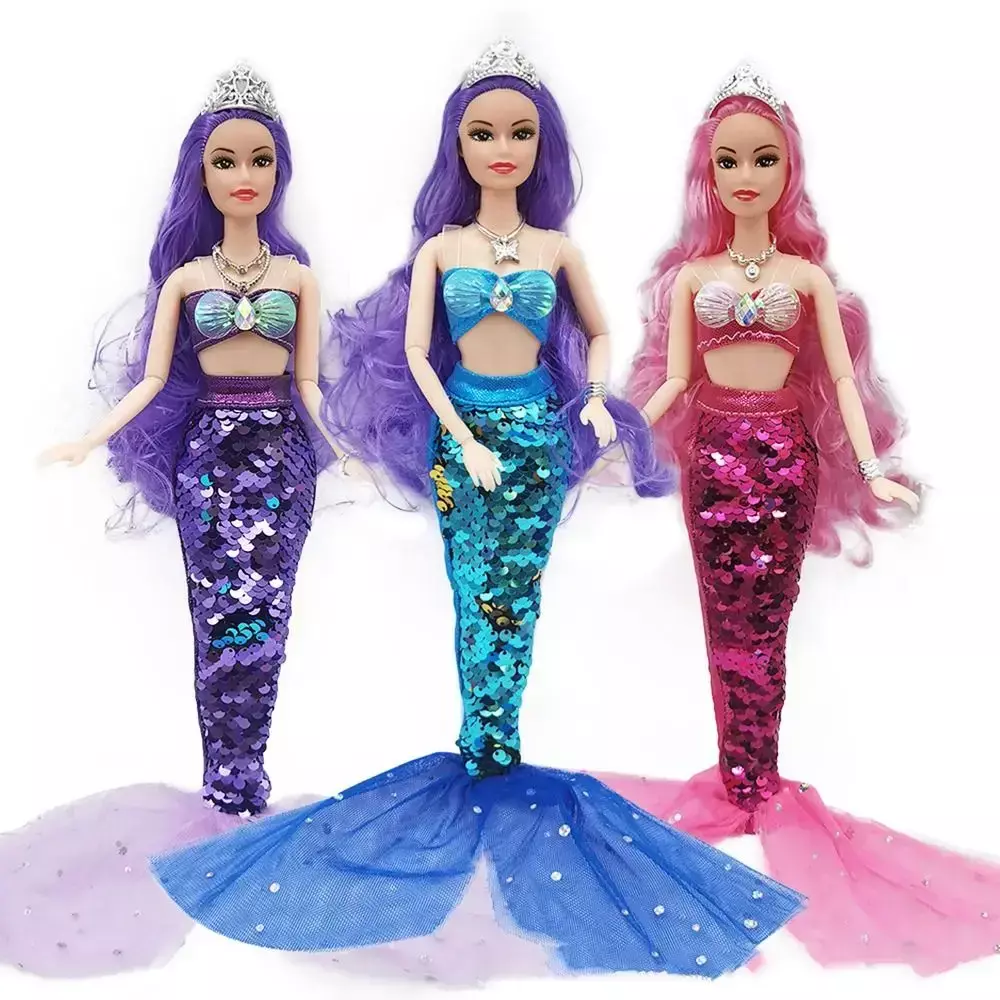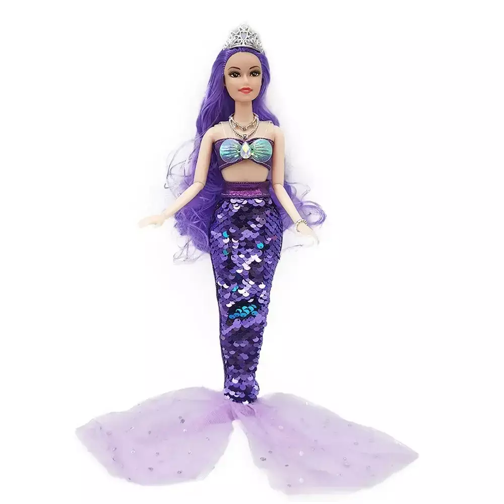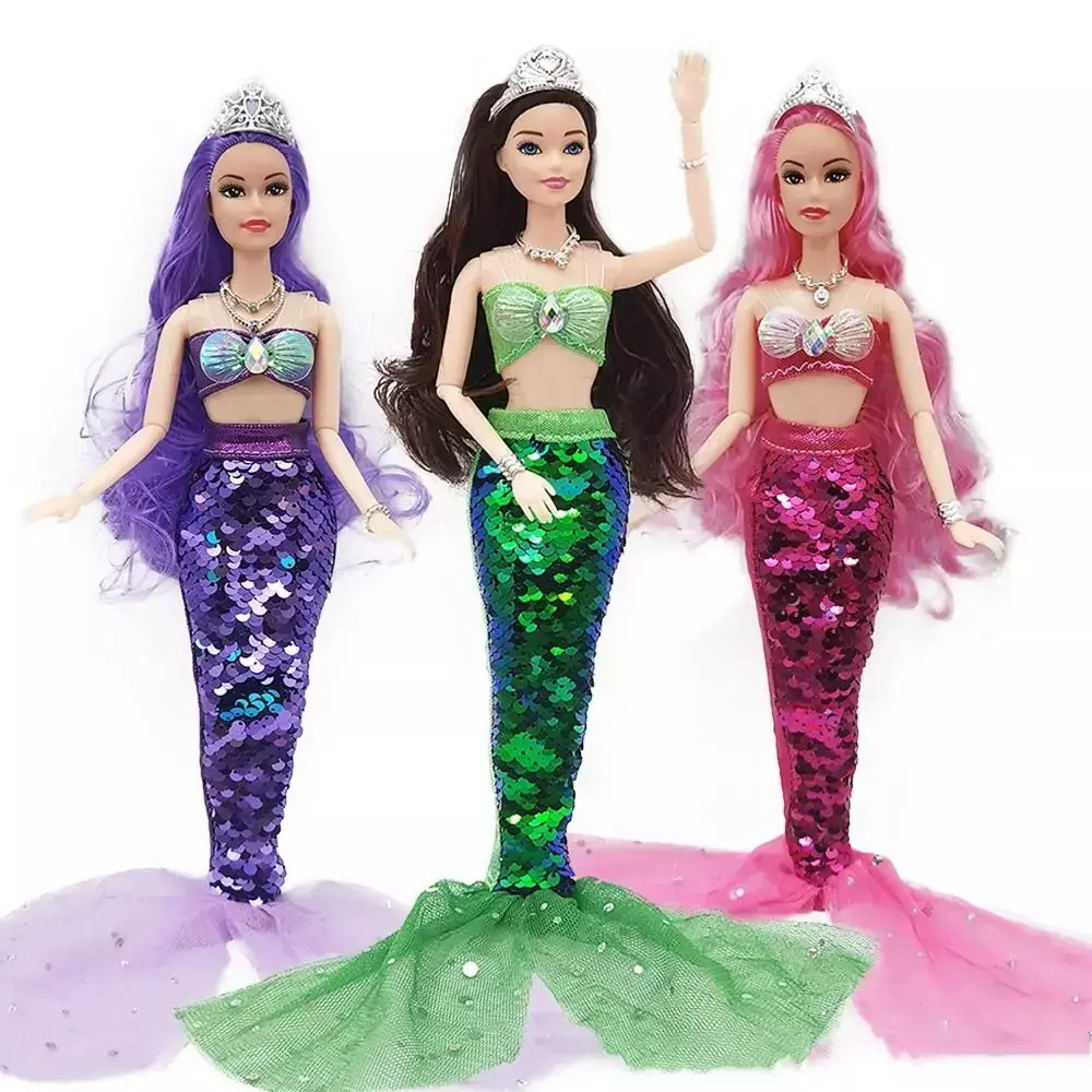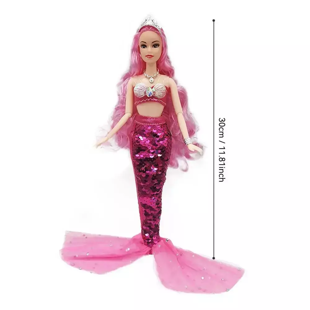 Applicable User: Children/Girls 1. Complete Mermaid Ensemble: This enchanting 30cm mermaid doll comes with a stunning sequined fin skirt that sparkles and shimmers in the light, making her the centerpiece of any playtime adventure.