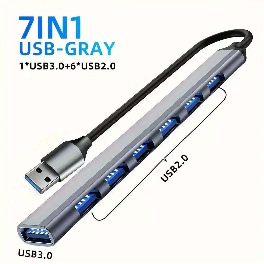 O EXTENSOR USB 7 EM 1 - ALUMÍNIO transforma qualquer porta USB em uma central completa de conexões. São portas rápidas, estáveis e versáteis para você ligar todos os seus periféricos, acelerar seu fluxo de trabalho e deixar seu setup muito mais funcional — seja no trabalho, nos estudos ou no home office.